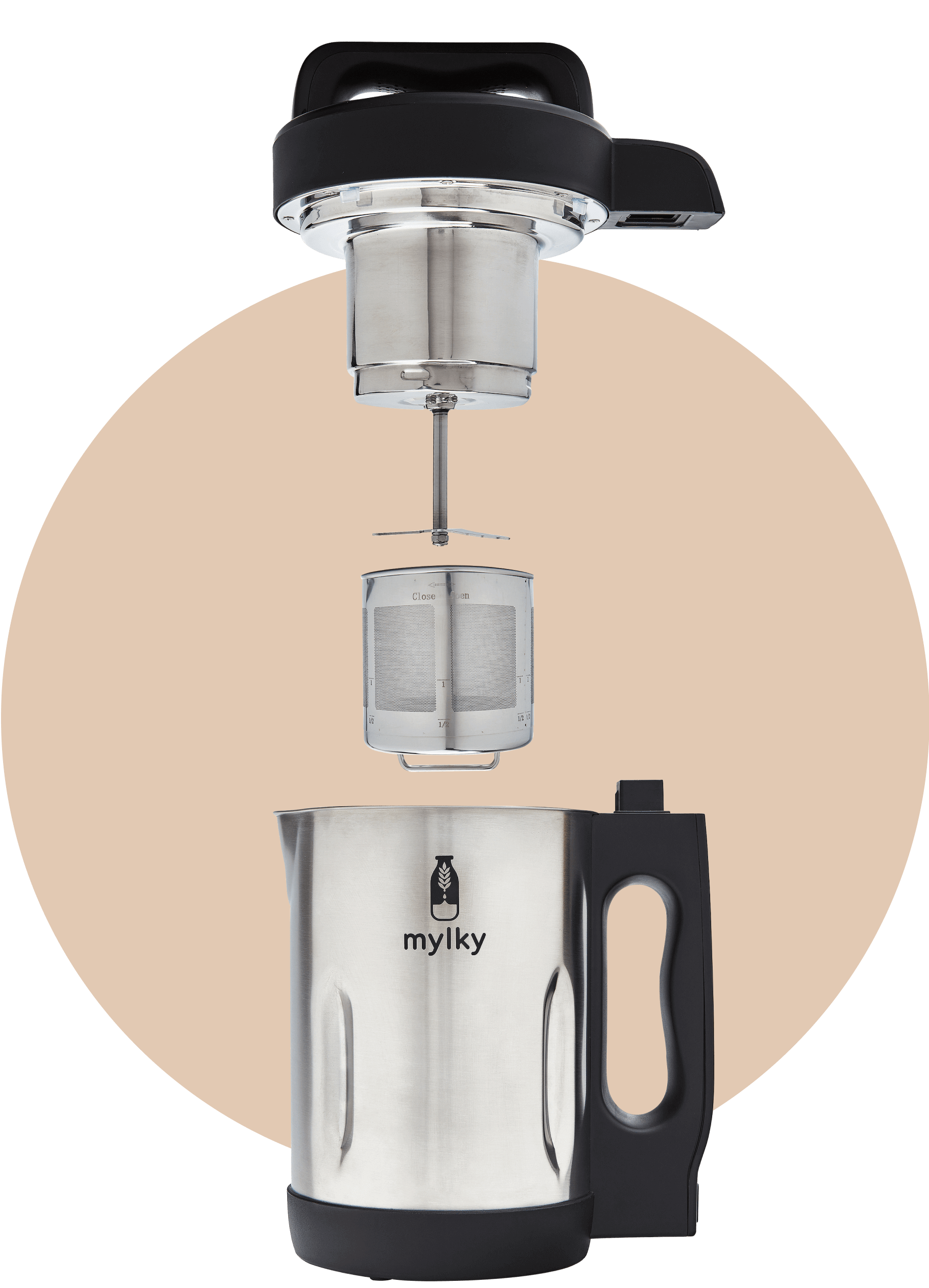 Voeg ingrediënten toe aan het slimme filtermandje van Mylky.